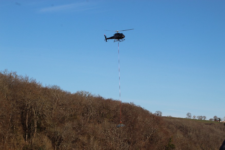 L'opération aura duré deux heures. Un hélicoptère a survolé les gorges du Cher, à Sainte-Thérence, ce matin. L'appareil a en fait déposé les élements d'une passerelle qui servira aux randonneurs.