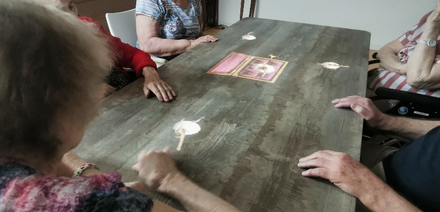 Alors bien sûr, il y a les animations classiques. Mais les nouvelles technologies ont également fait leur entrée dans ces structures, ces dernières années. Exemple à La Charité à Lavault Sainte-Anne, où l’EHPAD s’est doté depuis quelques jours d’une sorte de table magique. Son nom : la Tovertafel, un outil numérique qui permet de solliciter le cerveau des résidents, de manière ludique. " C'est un ordinateur jumelé à un rétroprojecteur qui projette sur une table et par le biais de capteurs infra-rouges, les mouvements des résidents sont captés", décrit Cindy Markowski, l'animatrice de la résidence. Les résidents peuvent donc jouer et pour certaines, se transformer.