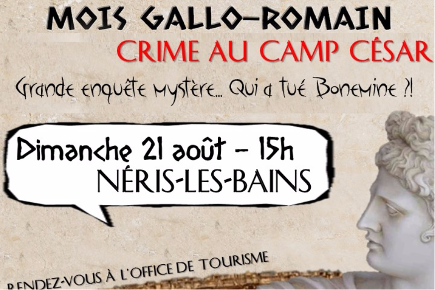 C'est le début du mois Gallo-Romain à Néris-Les-Bains ! Et pour s'imprégner de l'ambiance de ce mois qui s'annonce, l'office du tourisme vous propose de mener l'enquête sur le camp de César ce dimanche 21 Août à partir de 15 h. Une enquête à mener par équipe de deux à six joueurs !