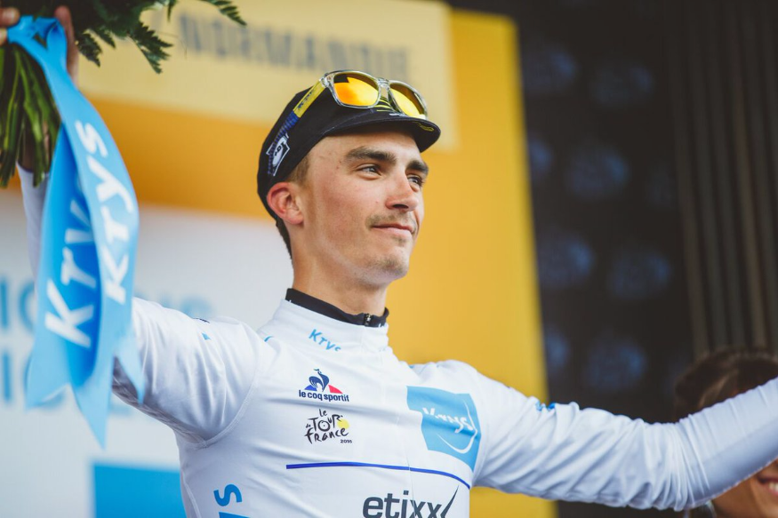 Julian Alaphilippe (photo : Twitter @Etixx_QuickStep) a conservé, cet après-midi, son maillot blanc de leader du classement des jeunes, à l'issue de la 4e étape disputée entre Saumur et Limoges.