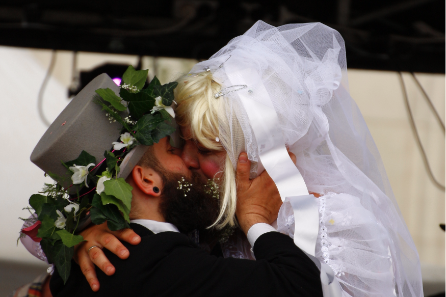 Ils se sont dits oui! Jérémy du Délirium et Geoffrey du Perceval ont célébré leur vrai-faux mariage hier à Montluçon, en hommage à Coluche, 30 ans après sa mort. Les bénéfices de la journée seront reversés aux Restos du coeur.