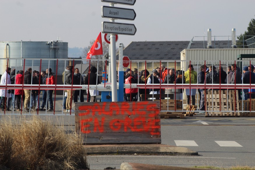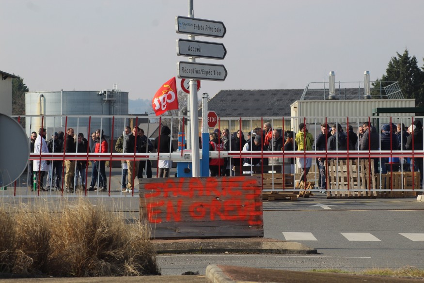 "Salariés en grève". Voilà ce qui est inscrit sur une palette posée au bord de la route qui passe devant l'usine Safran de Domérat. Entamé hier, le mouvement se poursuit ce mercredi. En milieu de matinée, tout à l'heure, une petite centaine de salariés étaient présents à l'entrée de l'établissement. Ils bloquent toujours les entrées et sorties de marchandises, en attendant une entrevue avec la directrice du site prévue en fin de matinée.