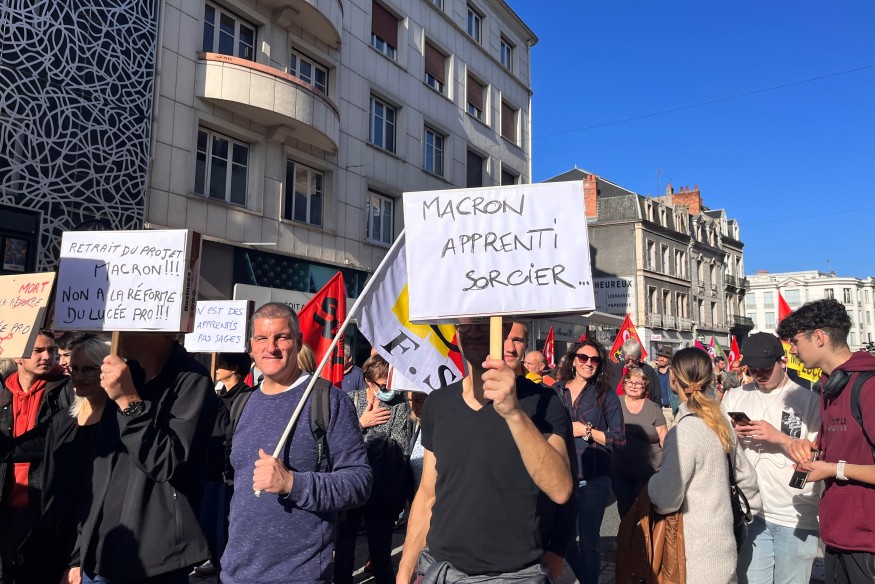 Ils sont aussi sortis dans la rue, hier. Une trentaine de professeurs en lycées professionnels étaient rassemblés devant le lycée Paul-Constans. Pancartes à la main, ils sont vent debout contre la réforme de la filière professionnelle, souhaitée par Emmanuel Macron.