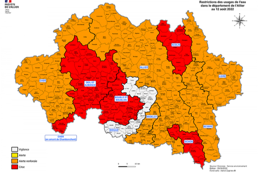 Depuis aujourd’hui, la préfecture de l’Allier a placé deux nouveaux bassins en crise :
