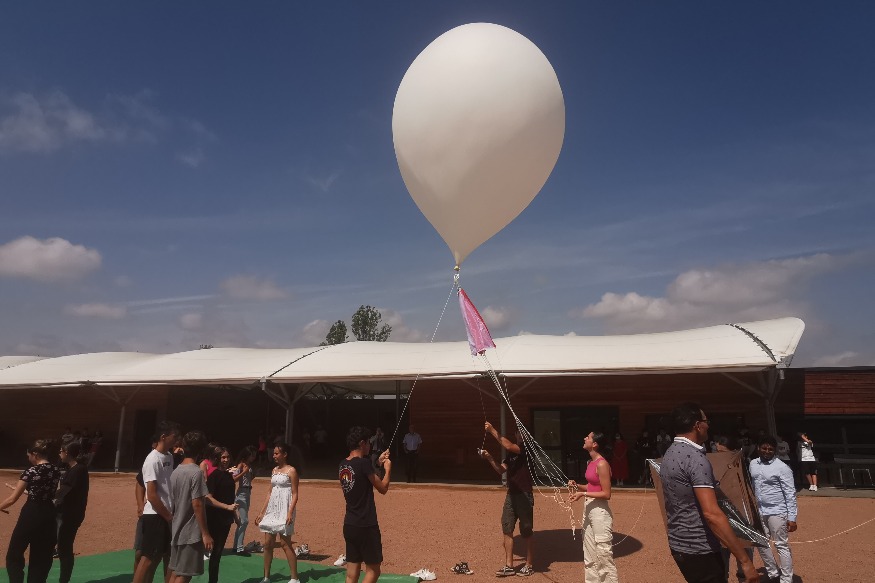 La cour du collège Jean-Jacques Soulier avait des petits airs de NASA, hier. Un ballon gonflé à l’hélium et auquel étaient accrochées deux nacelles bardées de capteurs a été envoyé dans le ciel. L’une d’elle est montée dans la stratosphère, jusqu’à 40 kms d’altitude donc.