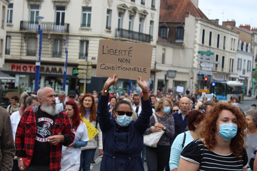 Deuxième manifestation en une semaine, avec un slogan, maintes fois répété « Ton pass, on n’en veut pas » : message clair à l’adresse d’Emmanuel Macron. Les participants considèrent les mesures pour contrer le Covid-19 comme liberticides.
