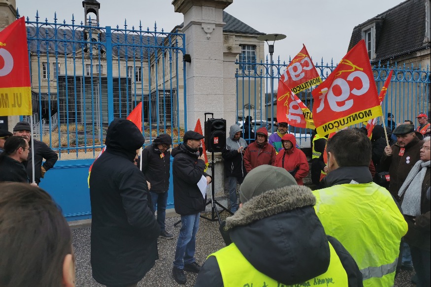 Lieu choisi pour dénoncer, je cite le secrétaire de l’Union départementale CGT, « une justice forte avec les faibles, et faible avec les forts », dénoncer aussi « les attaques contre celles et ceux qui luttent ».