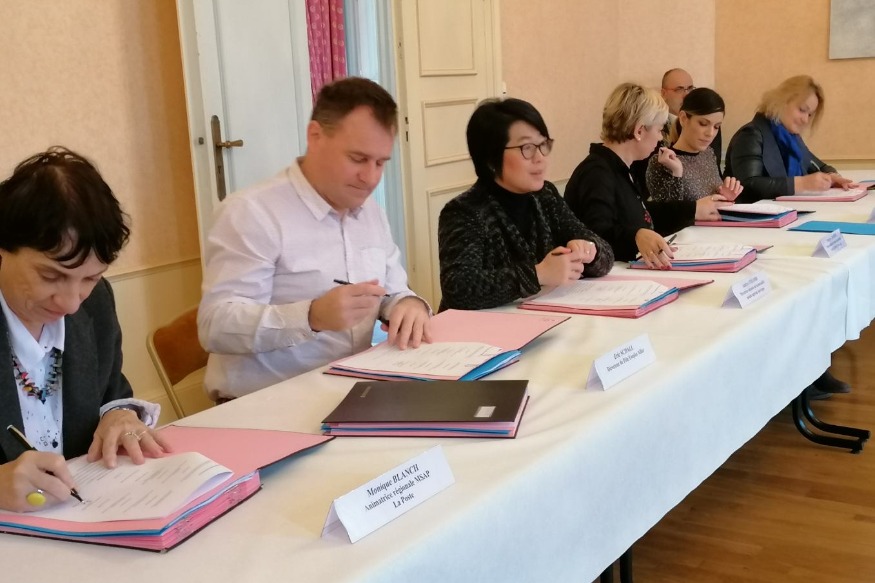 Ce matin, Marie-Fançoise Lecaillon, préfète de l'Allier a signé une convention départementale avec les 8 premiers France Services (dont 1 itinérant, bus numérique @Allierdpt) labellisés dans le département, et les opérateurs publics, à la préfecture. pic.twitter.com/6PJnYkTxdP