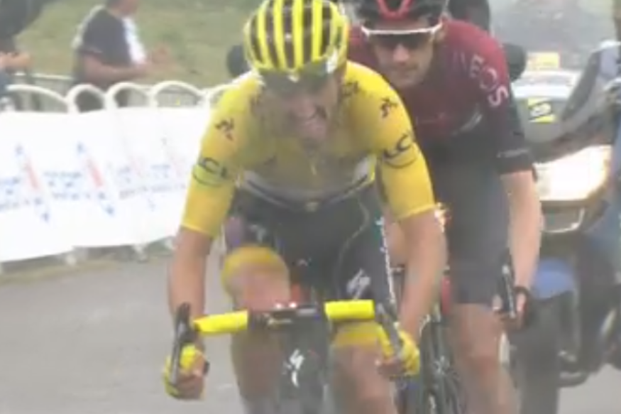 Il restait 5kms d'ascension. Et pour la première fois depuis 15 jours, Julian Alaphilippe a cédé. Il serrait les dents depuis déjà quelques minutes, dans cette ascension inédite qui menait sur les hauteurs de Foix. Et les coups de boutoir d'un Thibault Pinot......