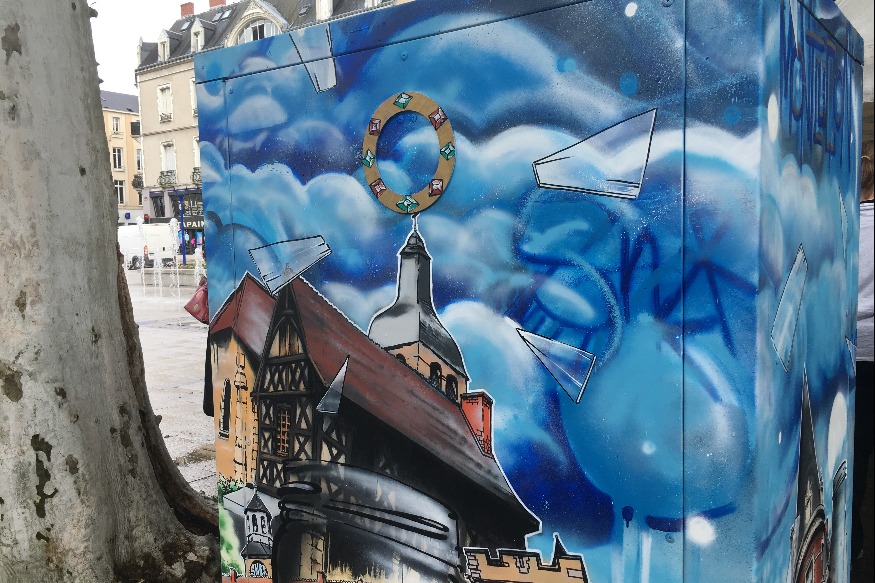 Il a tout simplement été totalement décoré aux couleurs de Montluçon par un graffeur du street-art city de Lurcy-Lévis.