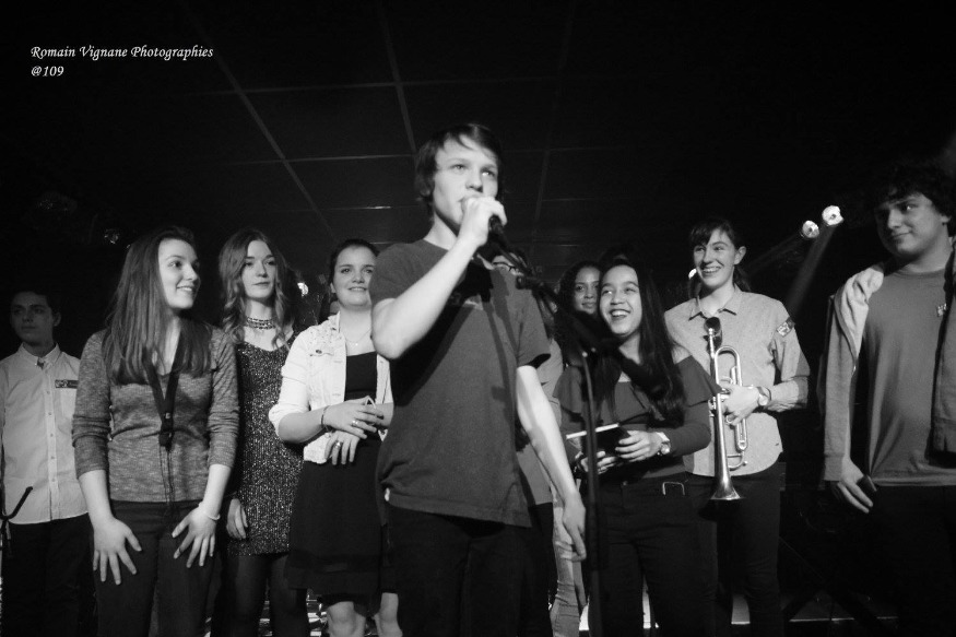 L’autre principe fondateur de cette soirée, c’est qu’elle permet à de jeunes pousses du lycée de monter sur scène