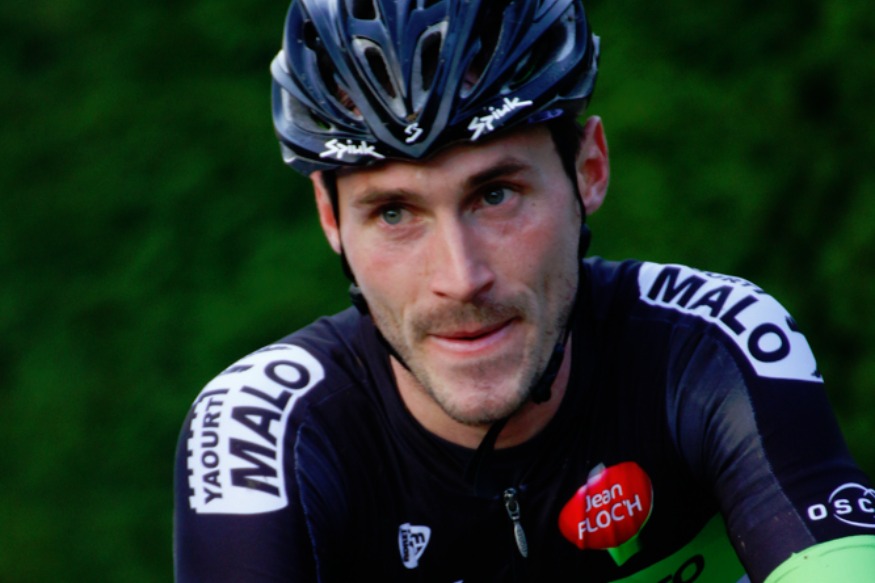 Le coureur montluçonnais à l’avant, hier sur les championnats de France en ligne, échappé, à la pédale, jusqu’à 7 kms de l’arrivée
