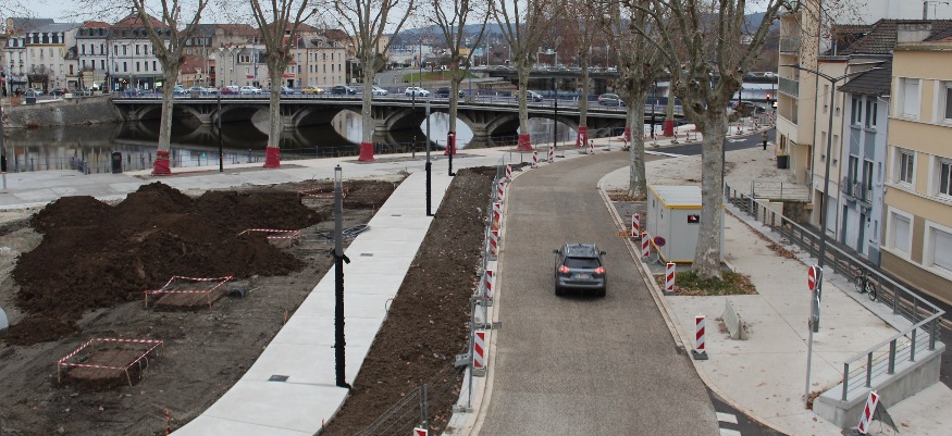 Les travaux de voirie sont désormais achevés sur place. C’est donc la configuration définitive de circulation qui est désormais en place. Une étape supplémentaire de franchie donc dans le cadre du projet C Montluçon d’aménagement des berges du Cher.