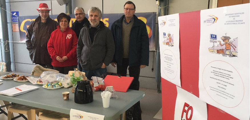 Force Ouvrière tient un stand tout au long de la journée dans le hall d'accueil du Centre hospitalier de Montluçon. Dans la ligne de mire du syndicat, les groupements hospitaliers de territoire (GHT) et leurs conséquences. "L'objectif des GHT, c'est de supprimer des postes et des lits", dénonce Catherine Dutheil.