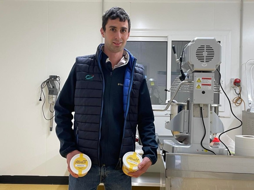 Depuis octobre 2021, il a rejoint le GAEC familial à Sauvagny, près de Cosne d’Allier. Il y a lancé une toute nouvelle activité de fabrication de glaces fermières. Il utilise pour cela le lait de ses 85 vaches Montbéliardes. "C'est ma maman qui a eu l'idée", témoigne ce jeune homme. Pour cette fin d'année, il a décidé d'innover en créant des bûches glacées.
