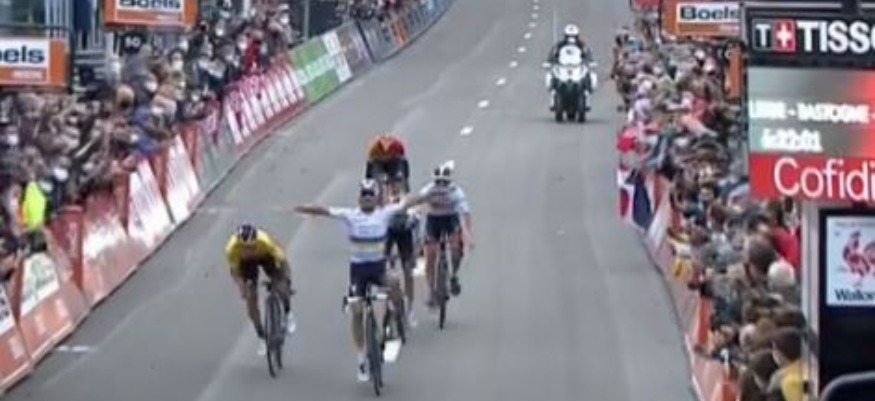Une semaine après son sacre mondial, Julian Alaphilippe est passé tout près d'une victoire sur Liège-Bastogne-Liège, cet après-midi. Alors qu'il avait course gagnée au sprint, il a levé les bras trop tôt et s'est fait souffler la victoire par Primoz Roglic, d'un pneu.... Rageant.