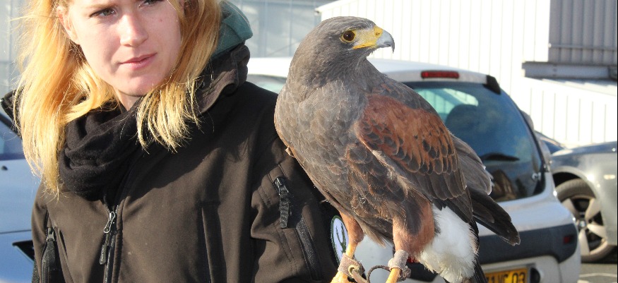 La Ville de Montluçon a fait appel à une entreprise spécialisée basée dans les Yvelines pour mener à bien cette opération. En fait, huit buses de Harris, des prédateurs naturels des étourneaux, vont être lâchés dans les dortoirs, avec pour objectif de les faire fuir. "Il faut qu'ils considèrent que les zones où ils s'installent sont dangereuses", résume le co-gérant de la société Phoenix effarouchement, Nicolas Noailles.