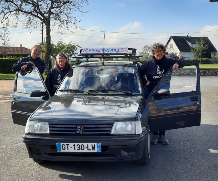 "Cette voiture nous a été donné par des amis qui ne s'en servait plus depuis 5 ans. Des papas d'élèves nous ont proposé de la remettre en état de marche. A Noël, elle roulait. Au mois d'avril on a fait le tour de l'Allier en trois jours. On voulait apprivoiser la voiture mais aussi apprendre à mieux se connaître toutes les trois et à vivre ensemble 24h/24."