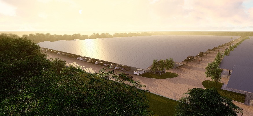 Jugez plutôt, ce sont 15 hectares qui vont être recouverts d’ombrières, abritant elles-mêmes des milliers de panneaux photovoltaïques. Cette centrale solaire permettra à terme de produire l’équivalent de la consommation électrique annuelle de 12.000 personnes.