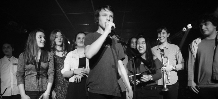 L’autre principe fondateur de cette soirée, c’est qu’elle permet à de jeunes pousses du lycée de monter sur scène