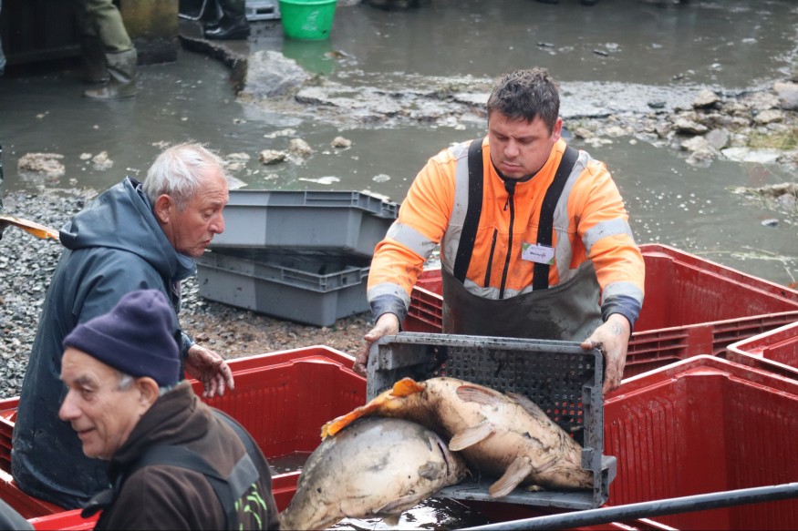 Une véritable fourmilière de l’aube, à la tombée de la nuit. Pêcheurs de la Fédération de pêche de l’Allier, agents de Montluçon co et de la commune de Prémilhat, ce sont plus de 120 personnes qui se sont activés, pour pêcher, acheminer puis évacuer le poisson. Et le bilan est tombé dans la soirée : ce sont un peu plus de 5 tonnes de poissons au total, plus de la moitié de carpes, mais aussi des sandres et quelques brochets qui ont été pêchés.