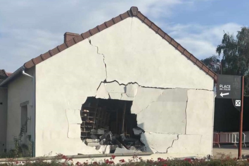 Sous l’effet du choc, une partie de ce mur s’est totalement effondrée, endommageant sérieusement le bâtiment.