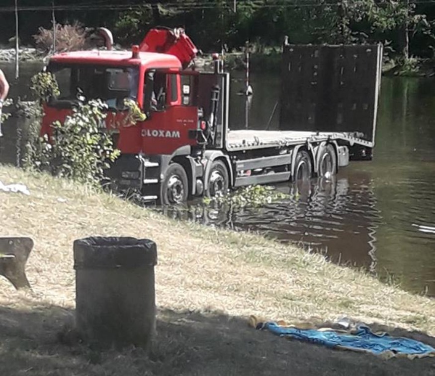 " Le camion n'arrivait pas à monter la côte, explique une témoin, présente sur place. Du coup, un tracteur a été utilisé pour le tracter. Mais le camion est resté bloqué au milieu de la côte. Le conducteur en est descendu. Le frein à main a alors dû lâcher, et le camion s'est retrouvé dans l'eau".