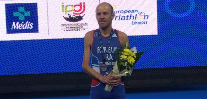 Yannick Bourseaux (photo : Twitter @FFTRI) a terminé 3e hier des championnats d'Europe de paratriathlon à Lisbonne (Portugal). Le sociétaire du Triathlon académie Montluçon a été devancé par l'Allemand Martin Schulz et l'Espagnol Jairo Luiz Lopez.