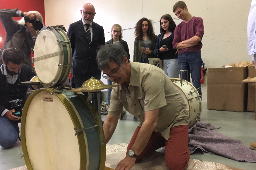 A travers une trentaine de modèles du début du 20e siècle aux années 60, des films d’archives, du rendu sonore, elle va retracer l’histoire de la batterie en France