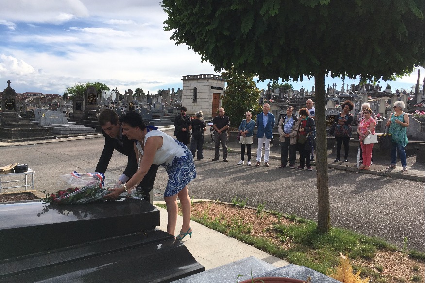 Dépôt de gerbe, au cimetière de l’Ouest, sur la tombe de Marx Dormoy devant une quinzaine de personnes