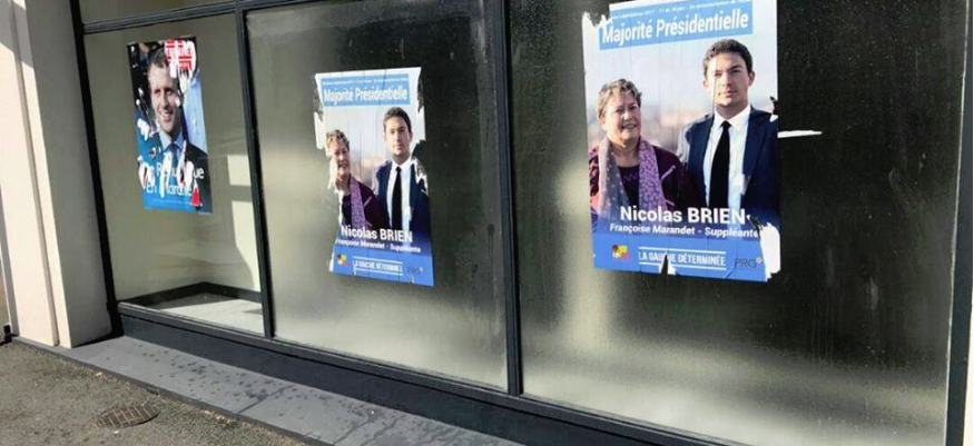 La candidate République en Marche Laurence Vanceunbrocke Mialon a dénoncé le collage intempestif d’affiche sur les vitrines de son local de campagne avenue Carnot, durant le week-end. Des affiches du candidat socialiste Nicolas Brien.