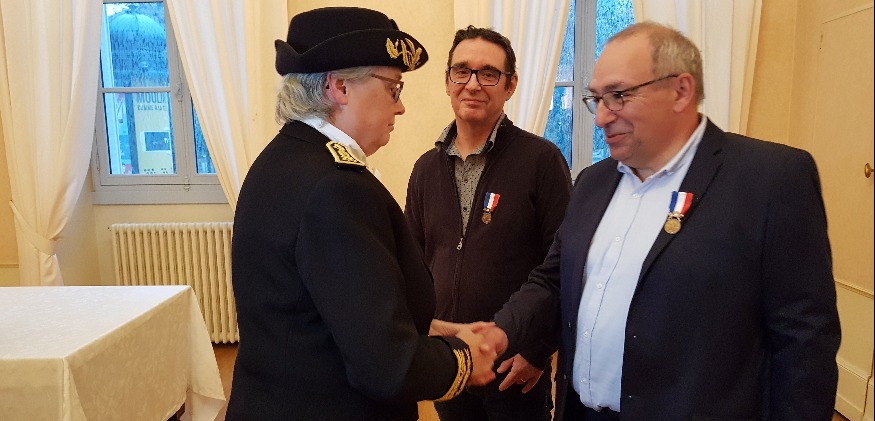 Jean-Paul Etienne et Frédéric Jay ont reçu la médaille de bronze pour acte de courage et de dévouement. Le 15 avril dernier, au sein même du bureau de Poste, ils s’étaient interposés alors qu’un homme s’en prenait à sa compagne.