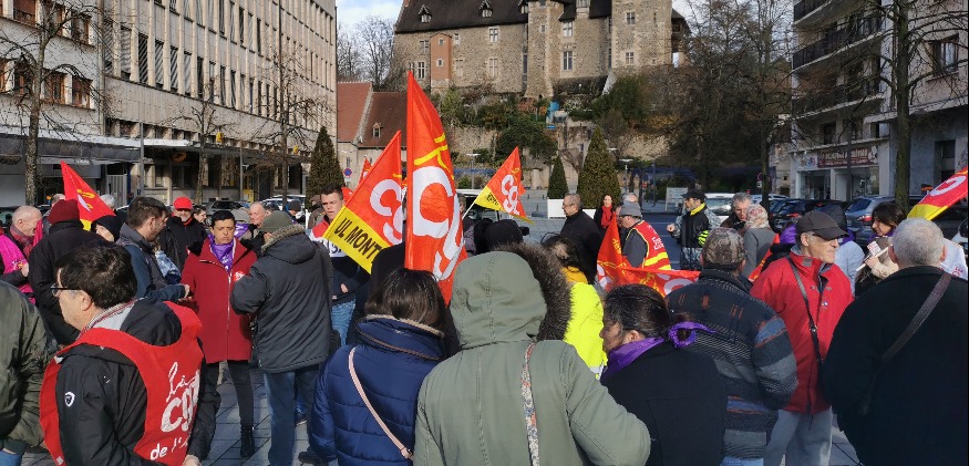 Il était 15h40, précise, hier Place Piquand. Un peu moins d’une centaine de personnes rassemblées à l’appel de la CGT.