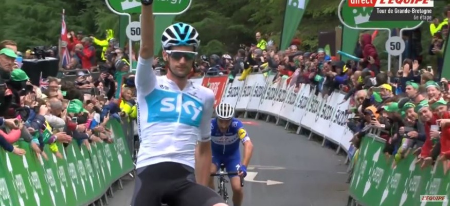 Wout Poels wins Stage 6 of the @TourofBritain for @TeamSky with @alafpolak finishing clear of @rogla in a dramatic final climb!