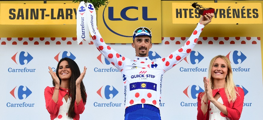 En passant en tête au sommet du Col d'Aspin, premier grand col de la 19e étape du Tour de France, Julian Alaphilippe est mathématiquement assuré de remporter le classement du meilleur grimpeur du Tour de France 2018.