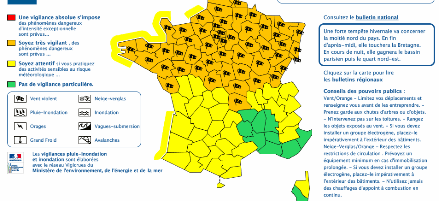 Les prévisionnistes annoncent une "forte tempête hivernale demandant une vigilance particulière". "En cours de journée de jeudi, une dépression se forme sur les îles brittanniques et se creuse en approchant le nord de la France en première partie de nuit. Elle provoque alors un vent fort de secteur ouest sur le Massif Central. Ce vent est particulièrement violent sur les plaines de l'Allier, avec des rafales atteignant les 100 km/h. Sur les Combrailles, le vent est violent sur le relief avec des rafales atteignant 100 à 110 km/h", explique le bulletin de vigilance de Météo France.