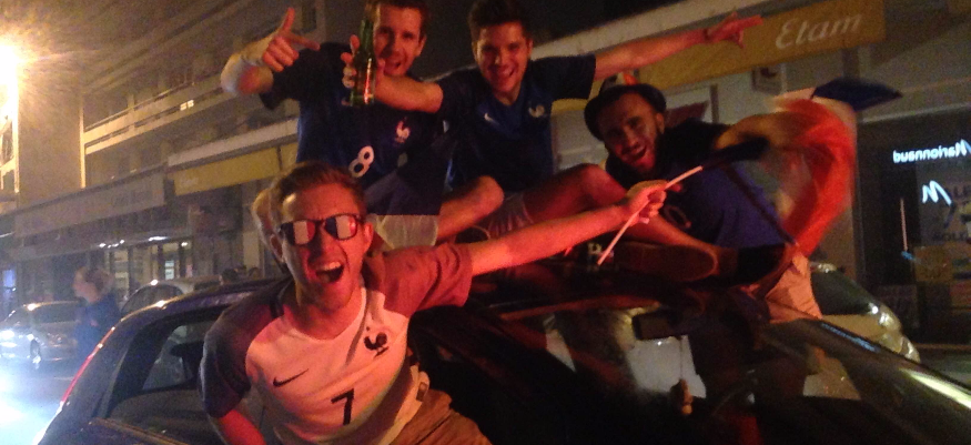 C'est ce qu'on appelle une vraie liesse populaire! Des centaines de personnes se sont rassemblées ce soir sur le Boulevard de Courtais et Place Piquand, après la qualification de l'équipe de France pour la finale de l'Euro de football.